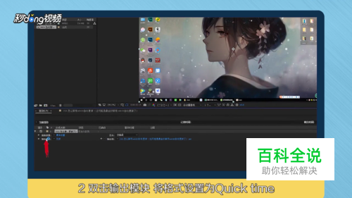 双击输出模块,将格式设置为Quick time,点击格式选项。