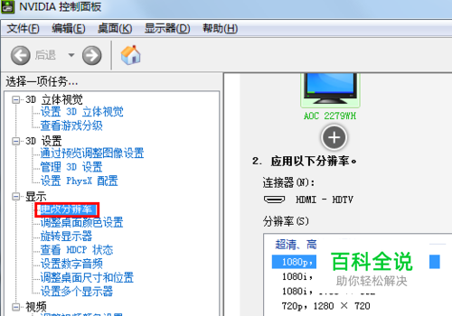 打开显卡控制面板,找到NVIDIA控制面板打开后点击 更改分辨率-自定义-创建自定义分辨率