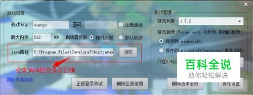 一般情况下在安装JAVA时不要更改其默认路径的话是与启动器的默认路径一样的不会出什么问题,但如果你更改过路径的话就会让启动器无法识别了。通常情况下正确的默认路径为: C:\Program Files\Java\jre7\bin\javaw.exe 而另外一点特别要注意的是64位操作系统的用户C盘中是存在着2个Program Files文件夹的,其中一个后面跟着(x86)这代表着这个文件夹中装着32位版本的系统程序。但64位系统必须要使用64位的JAVA才行,在选择游戏路径时要特别注意这点。