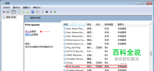 在电脑中查找‘服务’,找到‘Print Spooler’(打印服务)。