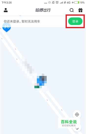 进入到哈啰单车首页后会显示目前没有登录账号,无法用车的提醒,点击旁边的【登录】。