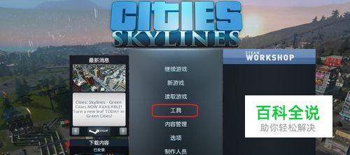 首先打开游戏,在主页面我们可以看到工具选项。点击工具,可以看到有个资产编辑工具,我们选择新建。