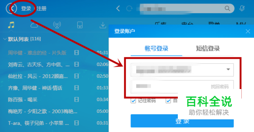 点击之后,会弹出酷狗音乐界面,我们再点击登陆酷狗账号密码,没有的话也可以用QQ来登陆,新版的酷狗,必须要登陆才可以下载,如下图所示