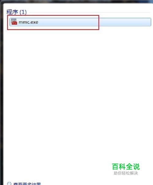 第一步点击电脑的开始菜单,在搜索框里面输入“mmc”,如下图所示:
