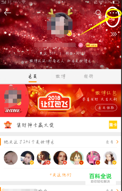 当一直出现验证码时,不要点击取消关注,直接打开对方的主页,大家可以看到此刻是已关注状态,然后点击黄色圈里3个点的地方
