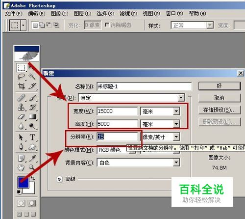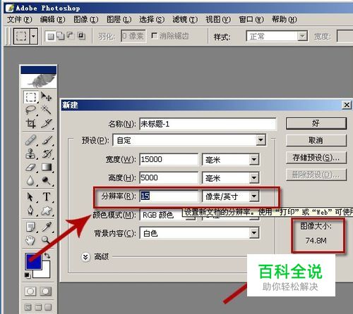 最重要的是尺寸,第二特别重要的是分辩率,还要看着文件的大小。如图: 【解释:尺寸越大,分辩率就越小,但是分辩率小也限度。就是看右下的文件大小来控制,最好控制是:70-100MB,哪么分辩率就是15-25之间了。】大的广告牌,或者户外广告牌都是特别大。就按我说的这样做绝对没有问题。