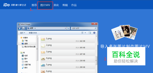 2.在iDo界面的上方点击“图片MV”,然后导入多张图片制作图片MV,点击“添加图片”(支持上传png.jpg.bmp.jpeg格式图片)。然后打开图片