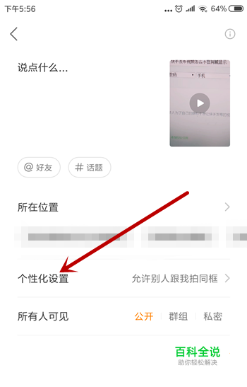 两个方法教给大家,第一个设置视频,在发布里点击【个性化设置】。