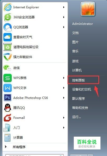 点击电脑左下方的开始菜单栏,找到“控制面板”选项,单击进入