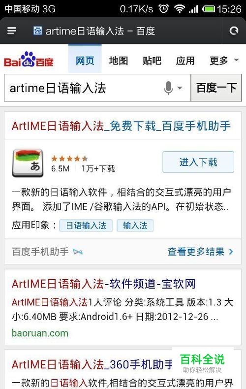 通过浏览器或者豌豆荚等软件下载途径,搜索ArtIME日语输入法,进行下载安装。
