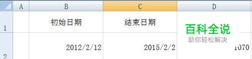 现在在B2、C2中输入起始日期和终止日期,如图所示。