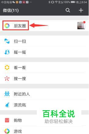 在“发现”页面,点击“朋友圈”,进入微信“朋友圈”首页;