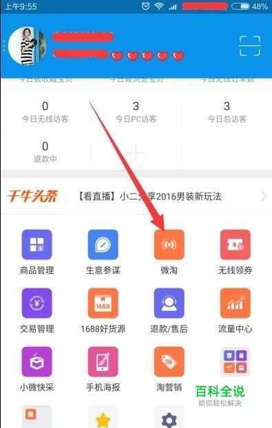 第一,登录手机千牛,点击底部工作台,找到“微淘”点击