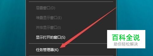 在Windows10桌面,右键点击任务栏空白位置,在弹出菜单中点击“任务管理器”菜单项。