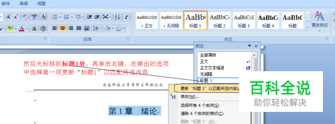 将标题1样式匹配到自己的1级标题格式