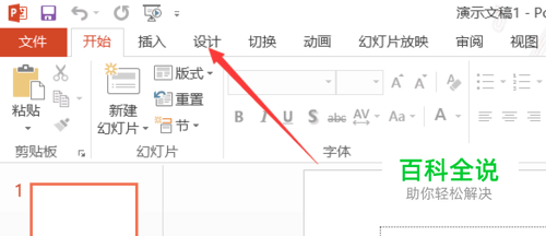 首先介绍ppt(简称)软件中,如何设置。打开软件后,默认进入开始页,需如图切换到设计。