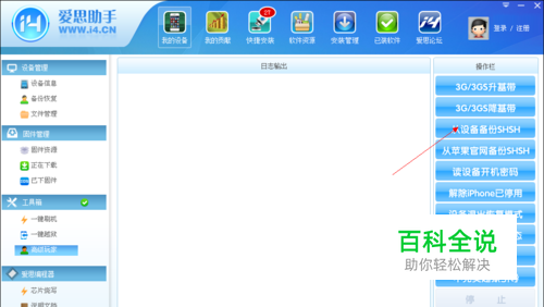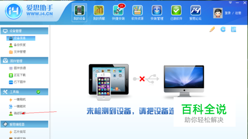 手机连接电脑,打开 爱思助手, 点击高级玩家 ,箭头处。