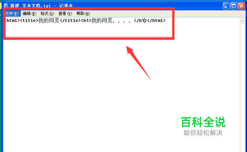 然后双击用记事本打开文本文档,如下图所示,我们书写一串简单的html代码