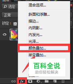 点击操作界面右下角添加图层样式按钮,在弹出的菜单中选择【颜色叠加】。
