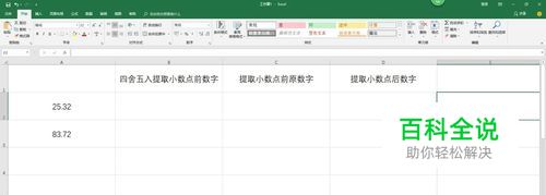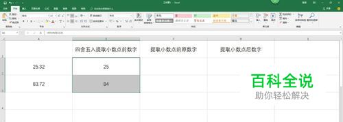 小数涉及到四舍五入,如下图所示,本例分享下提取小数点前后数字的几种方法。