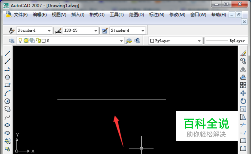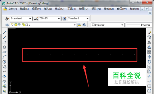 我们在CAD中画出一条直线,这个直线有两个端点,现在我们要在直线上找到等间距的点,可以使用绘图功能。