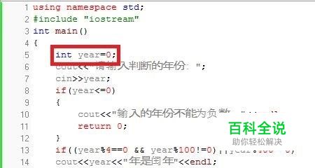 int year=0;定义 year变量为整形并初始化值0,用于储存年份。