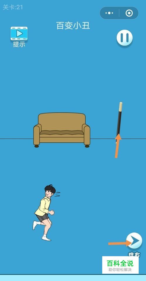 第21关先点击沙发旁的魔术棒,然后点击向右箭头进入右边的房间。