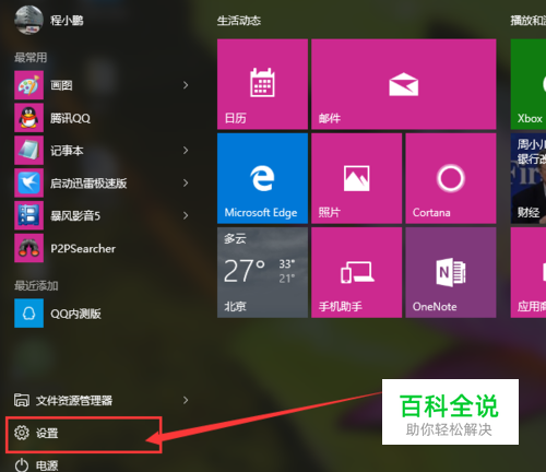 首先,请大家在Win10桌面上点击开始菜单,在开始菜单中,选择“ 设置”选项,进入Win10系统设置页面。
