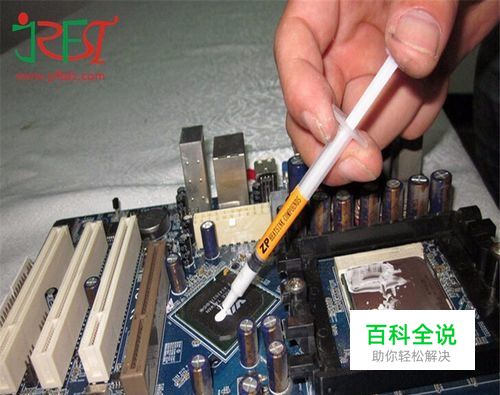 确定散热片上与CPU接触的区域,在散热器底部区域中心挤上一定量的导热硅脂。