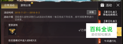 夏日特训营战地名次争夺是每日任务,每天完成登录、达到指定的名次指定次数即可完成。