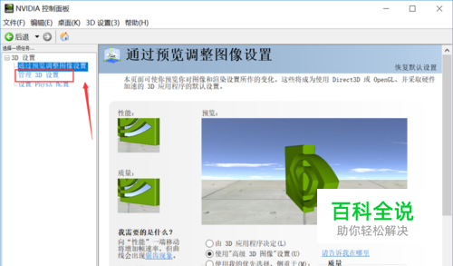 进入显卡控制面板,点击管理3D设置,如下图所示