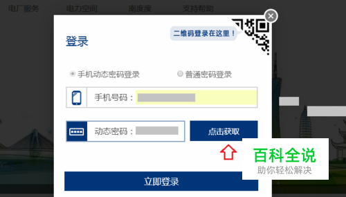 在电网(官网)进入登录界面,使用短信验证码进行登录(之前该账户已经绑定该手机号码)。