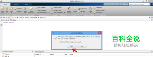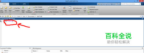 打开Matlab程序,并在命令窗口中输入edit+空格+所要导入的函数名称,图中所示函数名称为hanshu.