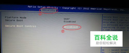 设置Secure Boot Control。如果优先启动顺序设置(Boot Option Priorities)为空,不能选择硬盘启动或者光盘启动,找到Securiry选项卡,设置Secure Boot Control为“Disabled”
