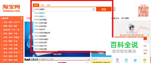 打开淘宝,然后在宝贝搜索栏内输入“4399火线精英”然后点击回车键。