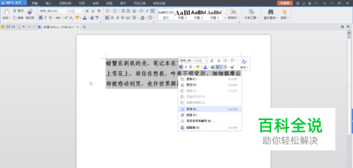 打开需要调节的字符文本,小编以本文中“漫天的我落在枫叶上雪花上”为例,此时,“上雪花上”在第二行,需要将其调整到第一行。