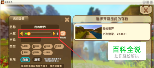 点击打开后就会出现刚才创建好的地图存档,如果是自己以前玩过的地图存档也会出现在这里,现在只需要点击然后调试房间人数就可
