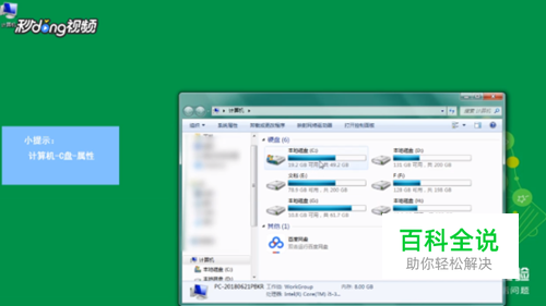双击计算机图标,右键C盘图标——“属性”。