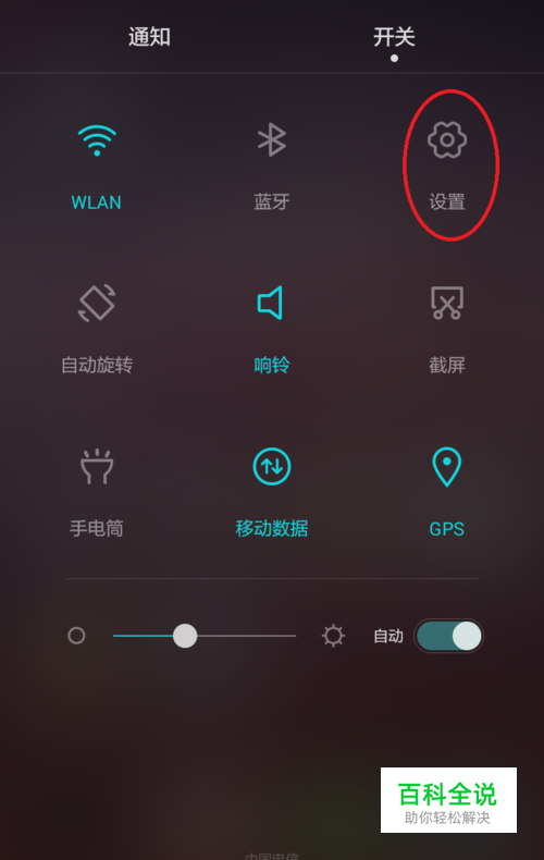 首先我们在手机上方下滑找到手机中的设置。