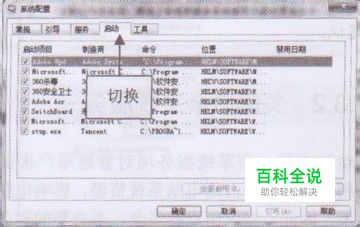 单击“确定”按钮,弹出“系统配置”对话 框,切换至“启动”选项卡,列表框中显示了多个自启动程序