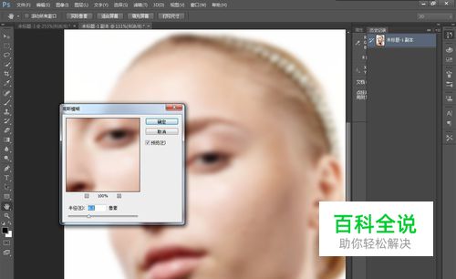 对打开的照片进行模糊处理 步骤:菜单:滤镜—模糊—高斯模糊, 注意:模糊半径数值以预览图看不到斑点时的数值为准。