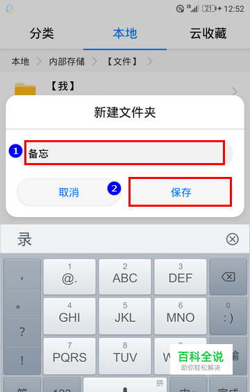 接着,在弹出的对话框中输入新文件夹的名字,再点击“保存”。