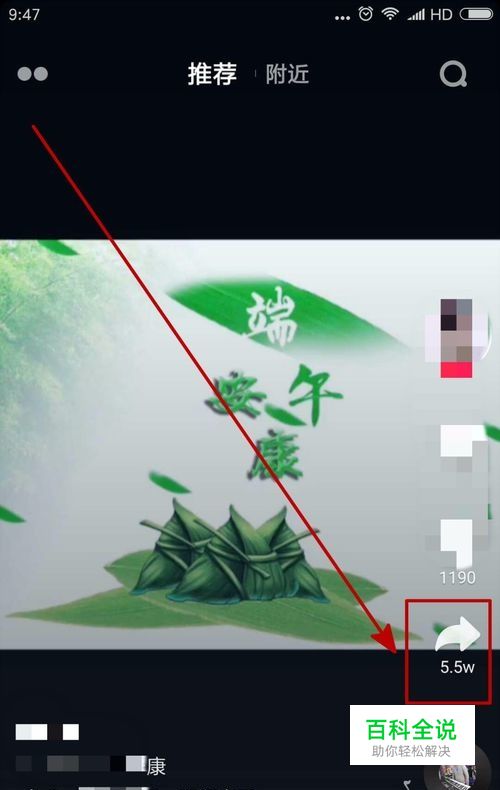 我们看到自己喜欢的视频,想要设为手机壁纸的时候可以点击视频右侧的转发按钮。
