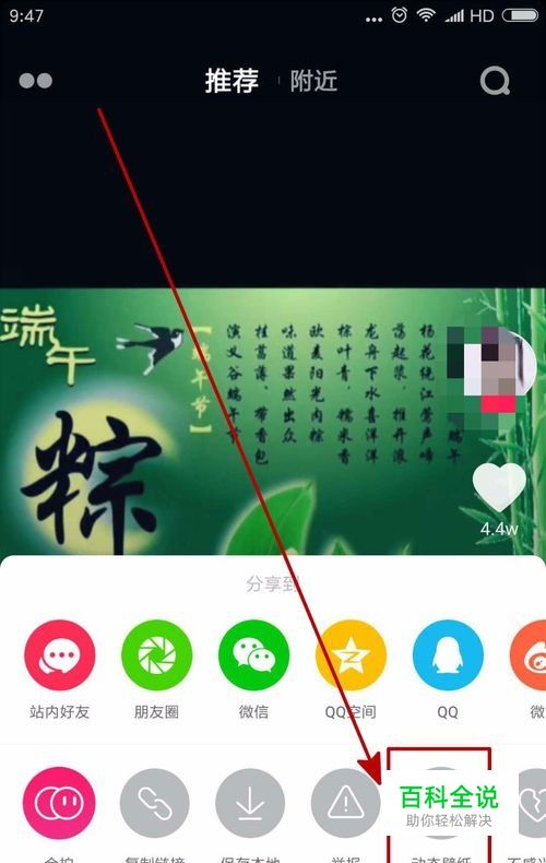 在弹出的一系列转发方式中,我们选择“动态壁纸”。