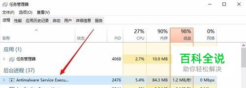 先来看一下任务管理器中的antimalware service executable进程,占用了大量的内存,CPU与读写硬盘资源。