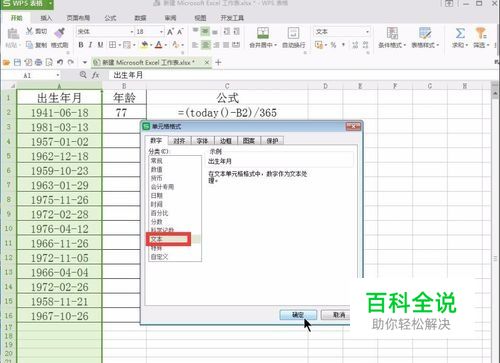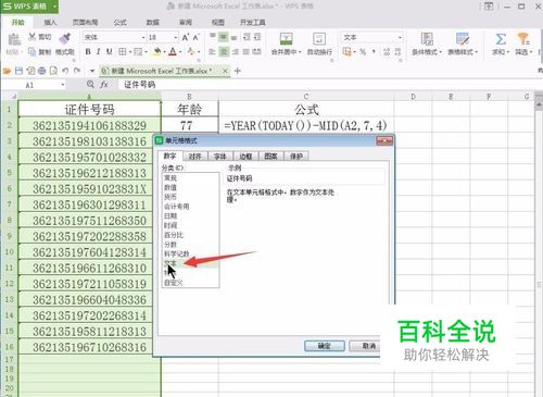 如果是单元格内是出生年月的格式计算年龄,同样表格中身份证号码这栏需要设置单元格格式为文本格式。