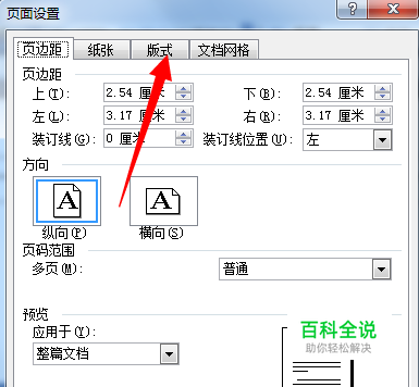 进入 “页面设置”对话框,点击上方 【版式】选项