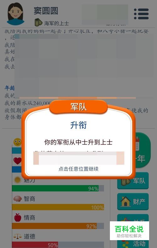 参军后,魅力、情商、智力数据低,想要升职就需要着重提升这三个数据: 每年点击图书馆可提升智力数据,每年点击锻炼可提升魅力数据