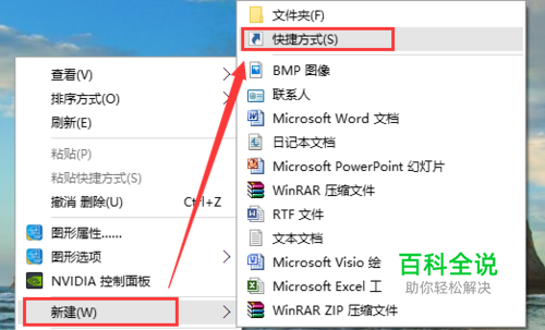 首先,鼠标右击桌面,在出来的下拉菜单中点击“新建”,然后在出来的菜单中点击“快捷方式(S)”。