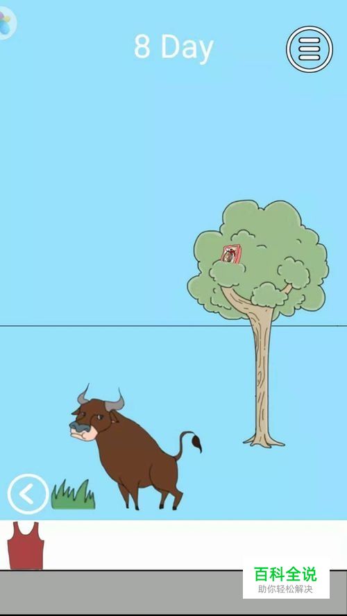 将衣柜中的红色短袖取出来,进入另外一个场景牛撞击树泡面掉下来,但是发现衣服一直挂不上去。
